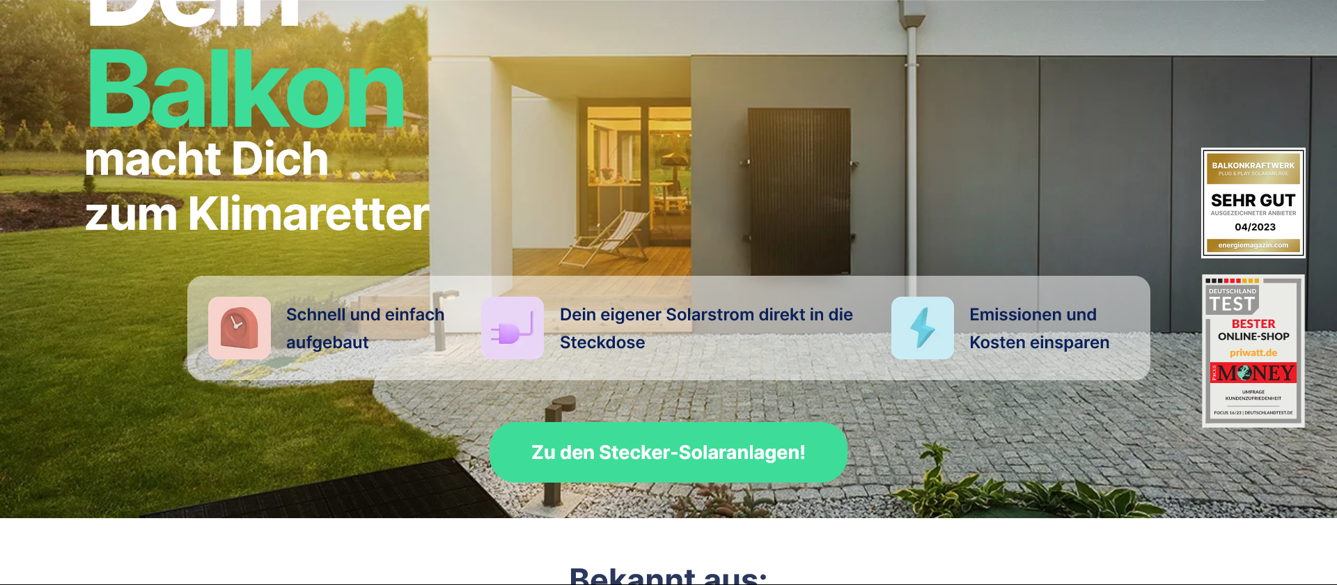 Priwatt ist ein im Herzen Leipzigs gegründetes Green-Energy Unternehmen, welches es sich zum Ziel gesetzt hat, die private Energiewende für alle zu ermöglichen. Mit ihren Stecker-Solaranlagen für Balkon, Garten, Fassade und Hausdach haben sie einen Weg gefunden, diese Vision zu verwirklichen. Einfach, bezahlbar und profitabel.