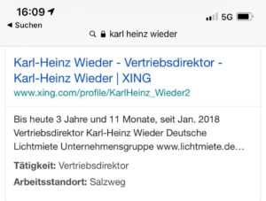 Nun fragt man uns, „warum wird dann so in Sachen Deutsche Lichtmiete auf eben jenen Karl Heinz Wieder losgegangen?“ Nun, Karl Heinz Wieder ist Vertriebsdirektor der Deutschen Lichtmiete, so kann man es bei XING lesen.