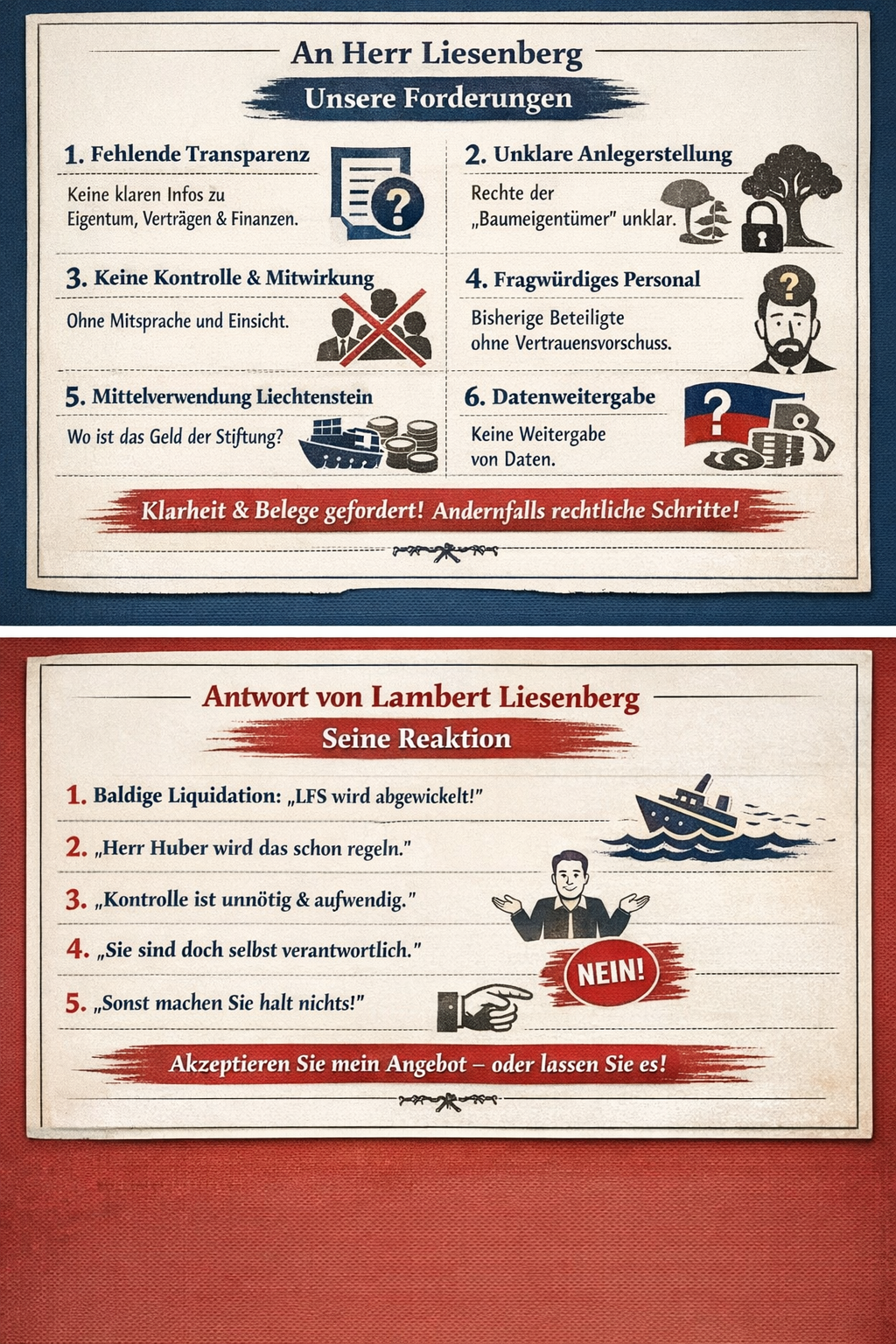 Nach Kenntnislage wurde Anlegern wiederholt dargestellt, dass Mittel an die Life Forestry Foundation in Liechtenstein zur Bewirtschaftung geflossen seien.