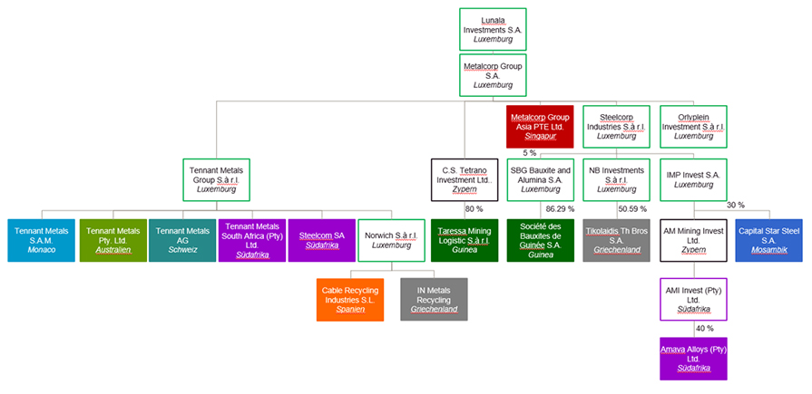 | MidCo 2 | Tennant Metals Group S.à r.l. zusammen mit ihren Tochtergesellschaften, die 5%ige Minderheitsbeteiligung an SBG Bauxite and Alumina S.A. und C.S. Tetrano Ltd. zusammen mit ihrer Tochtergesellschaft Taressa Mining Logistics S.à r.l. |
