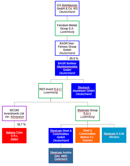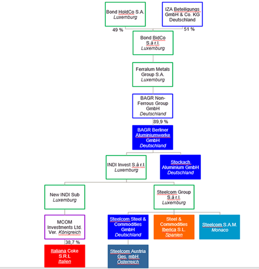 | MCOM ist Mitglied von MidCo 1, hält einen Anteil von 38,7 % an Italiana Coke und wird der Emittent der New Money Schuldverschreibung sein. | |