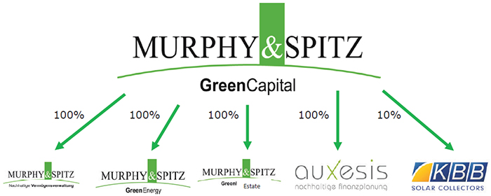 Die Murphy & Spitz Nachhaltige Vermögensverwaltung AG ist eine Tochtergesellschaft der börsennotierten Murphy & Spitz Green Capital AG. Diese fokussiert sich mit ihren operativ Tochtergesellschaften auf ethisch-ökologische Finanzdienstleistungen, Erneuerbare Energien und ökologische Immobilien. Das Ziel ist es, einen konstruktiven Beitrag zur nachhaltigen Entwicklung der Gesellschaft und Umwelt zu leisten. Als erste nachhaltige Vermögensverwaltung mit Spezialisierung auf nachhaltige Anlagestrategien und Geldanlagen bietet die Murphy & Spitz Nachhaltige Vermögensverwaltung AG privaten und institutionellen Kunden eine Verwaltung ihres Wertpapiervermögens nach ethischen und ökologischen Kriterien an.