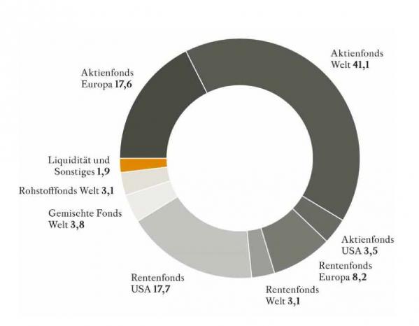 Die prozentualen Angaben beziehen sich auf den Anteil der einzelnen Vermögensgegenstände am Fondsvermögen.