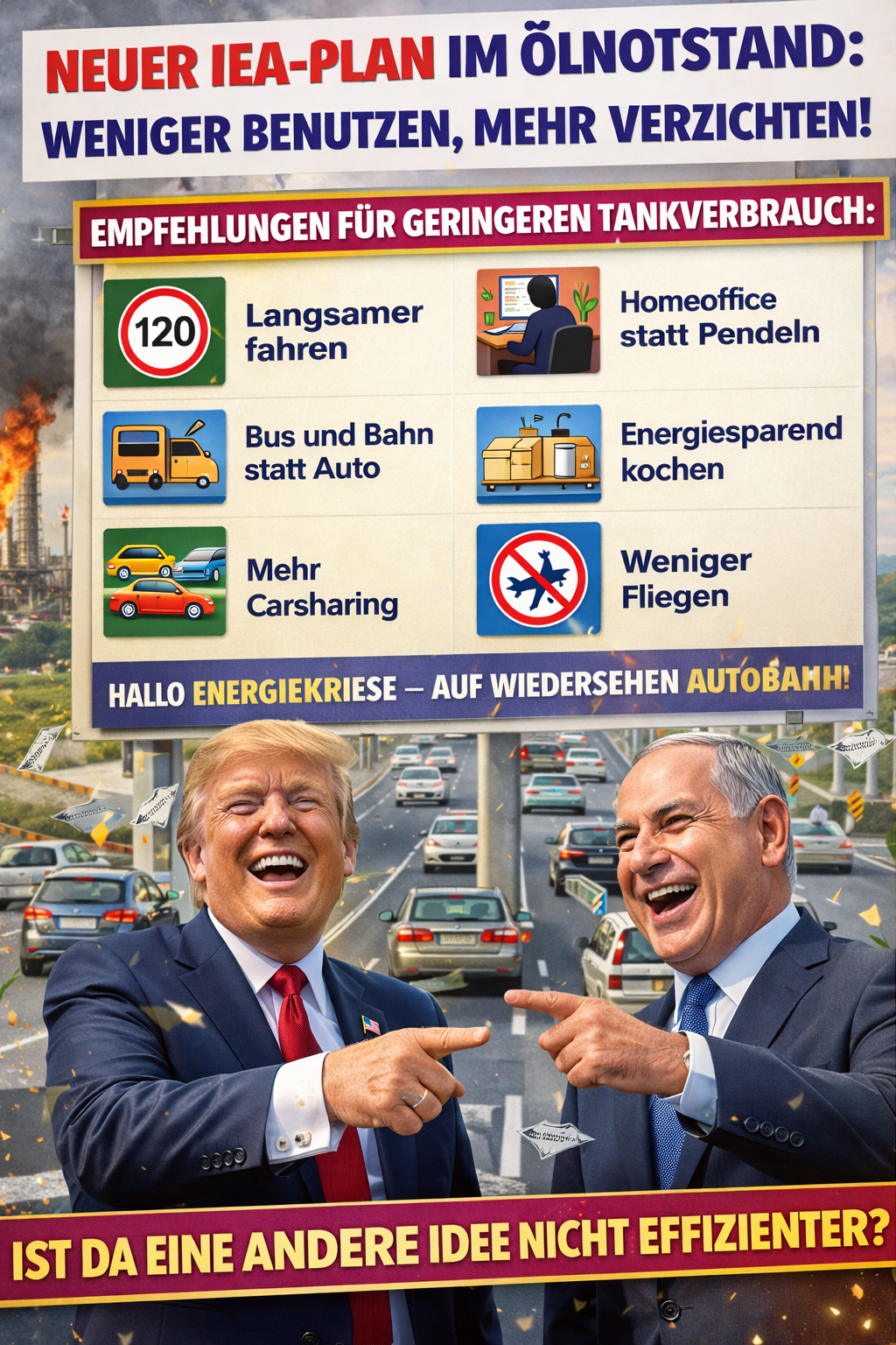 Die Internationale Energieagentur (IEA) hat eine geniale Lösung für die aktuelle Ölkrise präsentiert. Und sie ist so überraschend wie beruhigend: Wir sollen einfach weniger verbrauchen.
