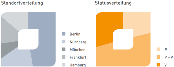 In den beiden nachfolgenden Darstellungen erfolgt ein Überblick über die Verteilung der Investitionsmittel auf die einzelnen Metropolstandorte sowie auf die einzelnen Projektphasen bzw. den Projektstatus.