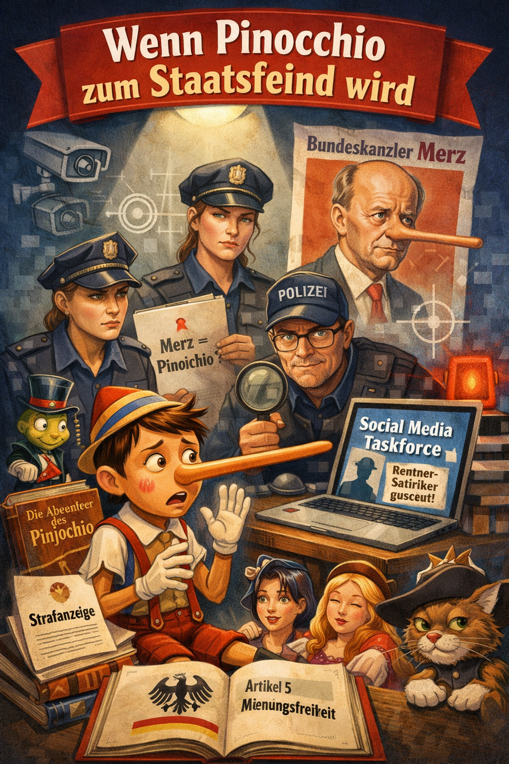 Manchmal fragt man sich, ob es in deutschen Amtsstuben eine geheime Abteilung für literarische Empörung gibt. Anders lässt sich kaum erklären, warum die Social-Media-Abteilung der Heilbronner Polizei offenbar in höchste Alarmbereitschaft versetzt wurde, nachdem ein Rentner es gewagt hatte, Bundeskanzler Friedrich Merz als „Pinocchio“ zu bezeichnen.