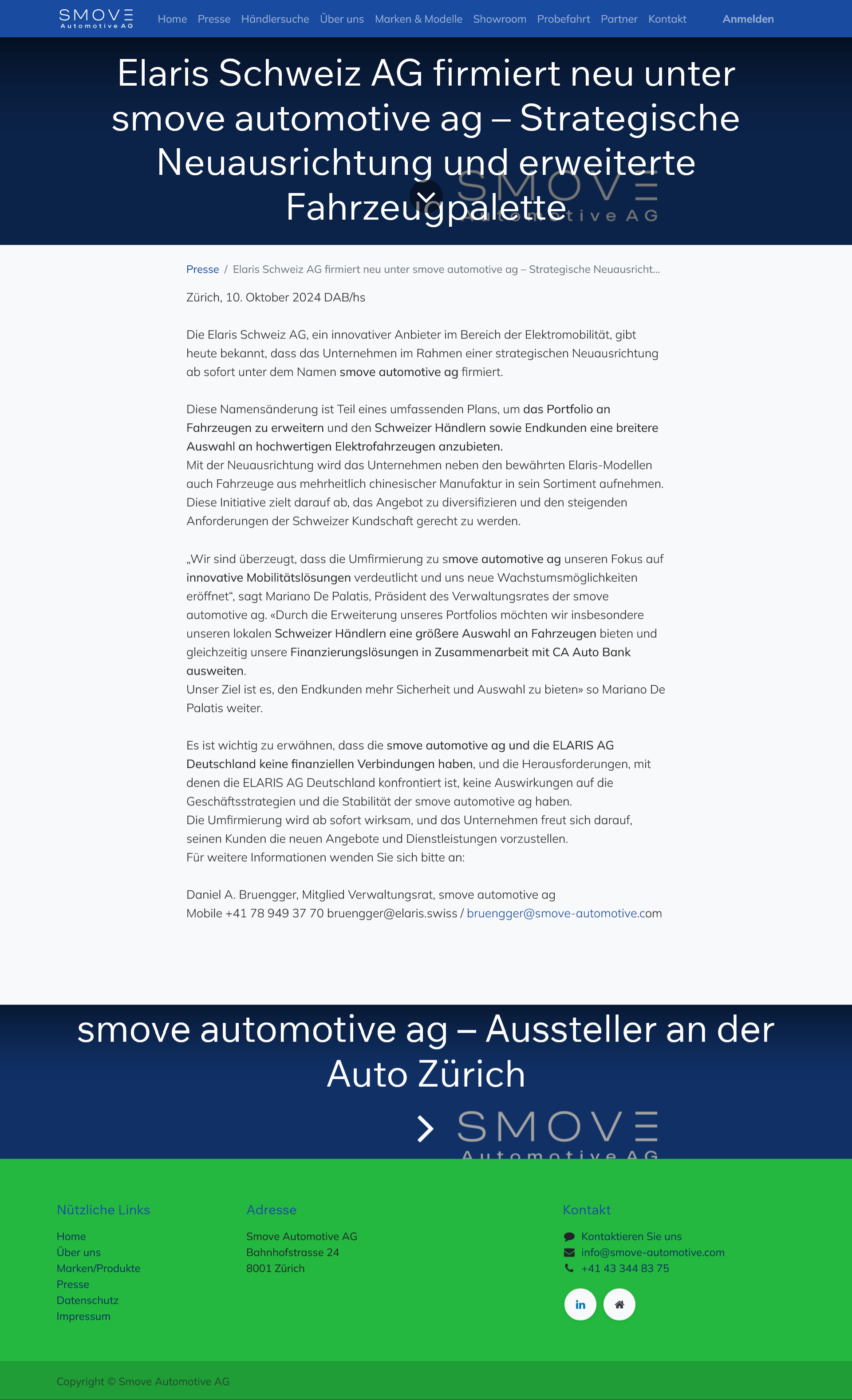 Die Smove Automotive AG sieht in der Umfirmierung einen wichtigen Meilenstein, um ihre Marktposition weiter zu stärken. Mit einer erweiterten Fahrzeugpalette und einem klaren Fokus auf den Schweizer Markt möchte das Unternehmen seine Präsenz in der Elektromobilitätsbranche nachhaltig ausbauen. Die Umfirmierung ist ab sofort wirksam und soll den Weg für eine erfolgreiche Zukunft ebnen.
