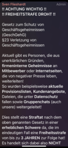Man hatte uns Informationen zugespielt, die wohl eine Kommunikation vom gestrigen Tag widerspiegeln soll. Das allerdings in der Form, die wir „grenzwertig“ finden, aber auch das ist unsere persönliche Meinung.