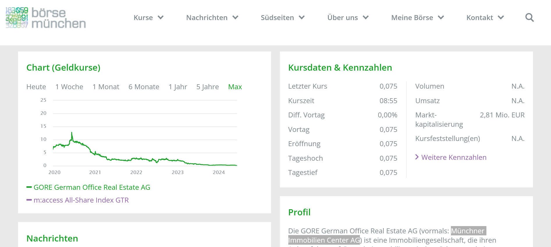 Klar, werden Sie sagen, jetzt, wo man am Boden liegt, kommen viele und treten auf einen ein. Das ist so, und nicht nur bei Ihnen. Es ist immer der Punkt, wo dann auch der Spruch „die Hoffnung stirbt zuletzt“ eben dann stirbt. Mal ganz ehrlich, Herr Schneider, ich habe nicht verstanden, dass Sie einen Mega-Job bei CMS gegen den Job bei Publity/GORE AG getauscht haben, okay, muss ich auch nicht. Trotzdem, und auch hier wieder ein altes Sprichwort: „Der Erfolg hat viele Väter, der Misserfolg leider immer nur einen.“ Ich kann mich noch an den Start der GORE AG, damals noch als Münchner Immobilien Center AG, erinnern. Der Aktienkurs kannte zunächst nur eine Richtung, nach oben.